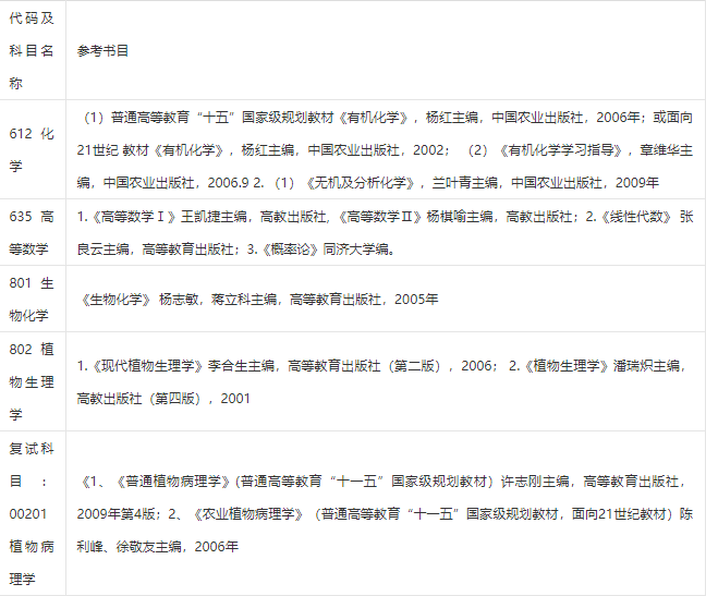 南农考研辅导班:2020年南京农业大学090401植物病理学考研参考书目