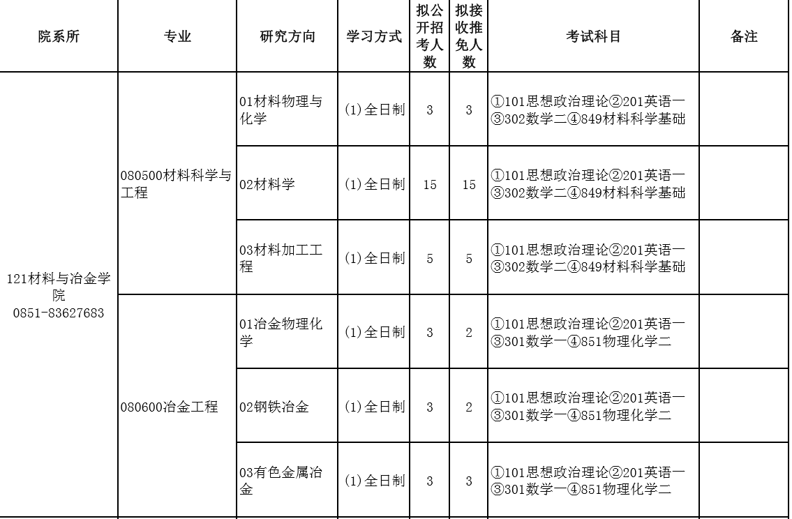 贵州大学考研辅导班:2020贵州大学材料与冶金学院研究生专业目录、招生人数、考试科目