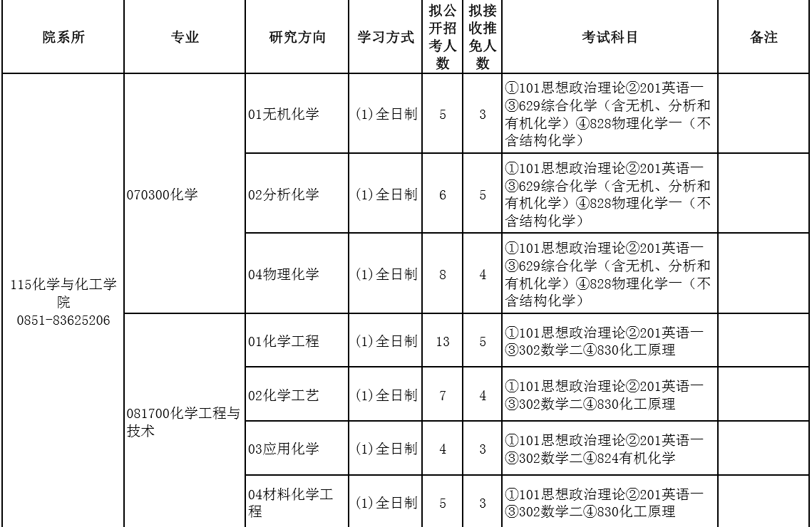 贵州大学考研辅导班:2020贵州大学化学与化工学院研究生专业目录、招生人数、考试科目