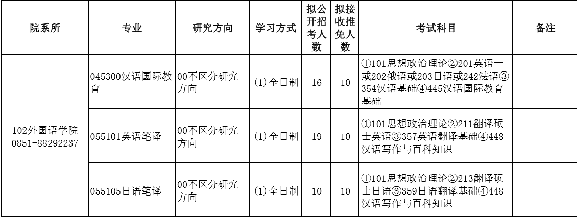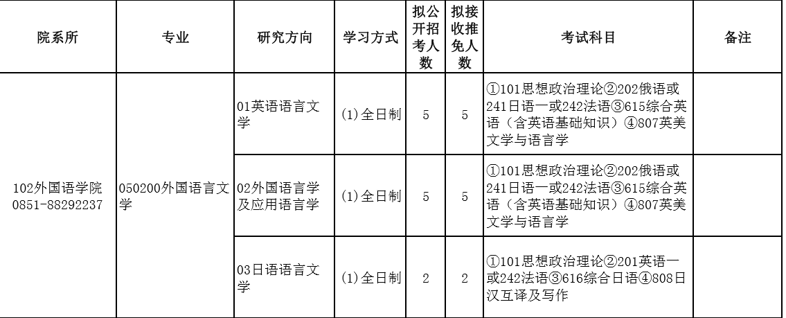 贵州大学考研辅导班:2020贵州大学外国语学院研究生专业目录、招生人数、考试科目