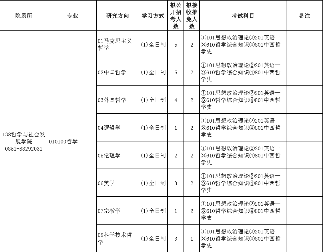 贵州大学考研辅导班:2020贵州大学哲学与社会发展学院研究生专业目录、招生人数、考试科目