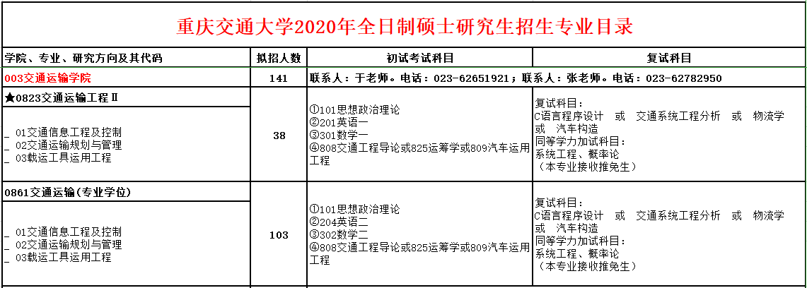 重庆交大考研辅导班:2020年重庆交通大学交通运输学院考研招生专业目录