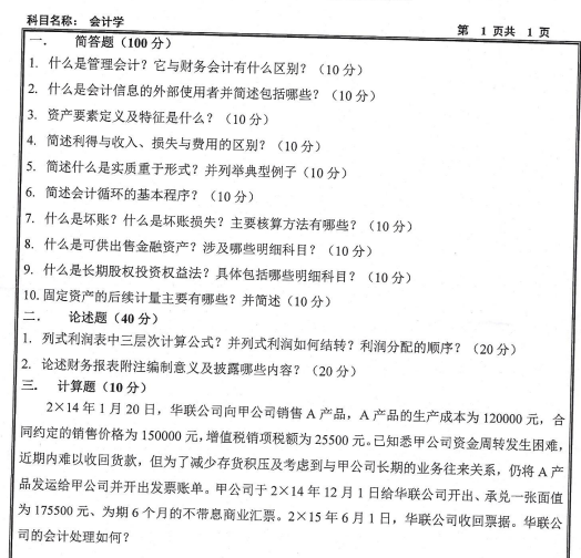 会计硕士考研真题