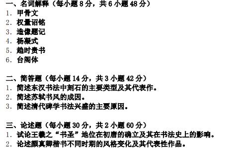 北京城市学院考研辅导班:北京城市学院2019年考研《中国书法史》入学试题