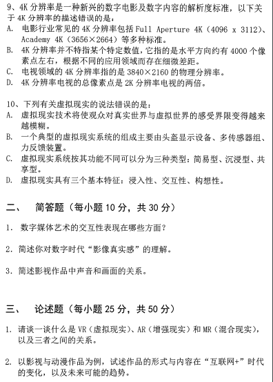 北邮考研辅导班:北京邮电大学2018年考研620数字媒体理论与创作真题