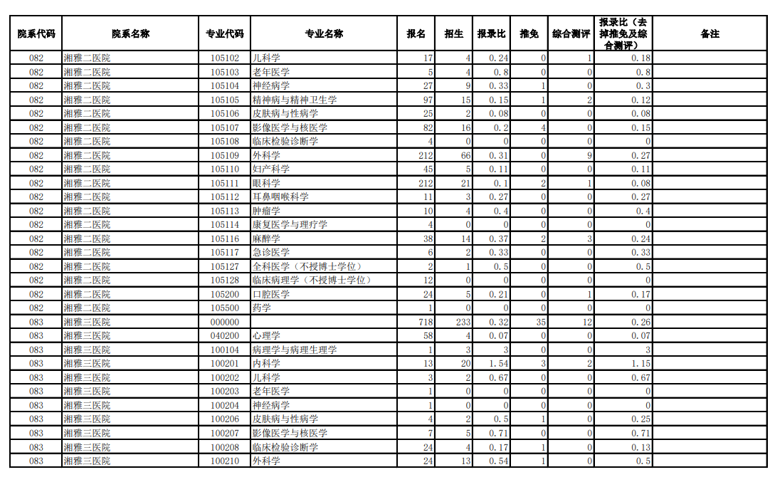 中南大学考研辅导班:中南大学2019年全日制硕士研究生报录情况统计(十)