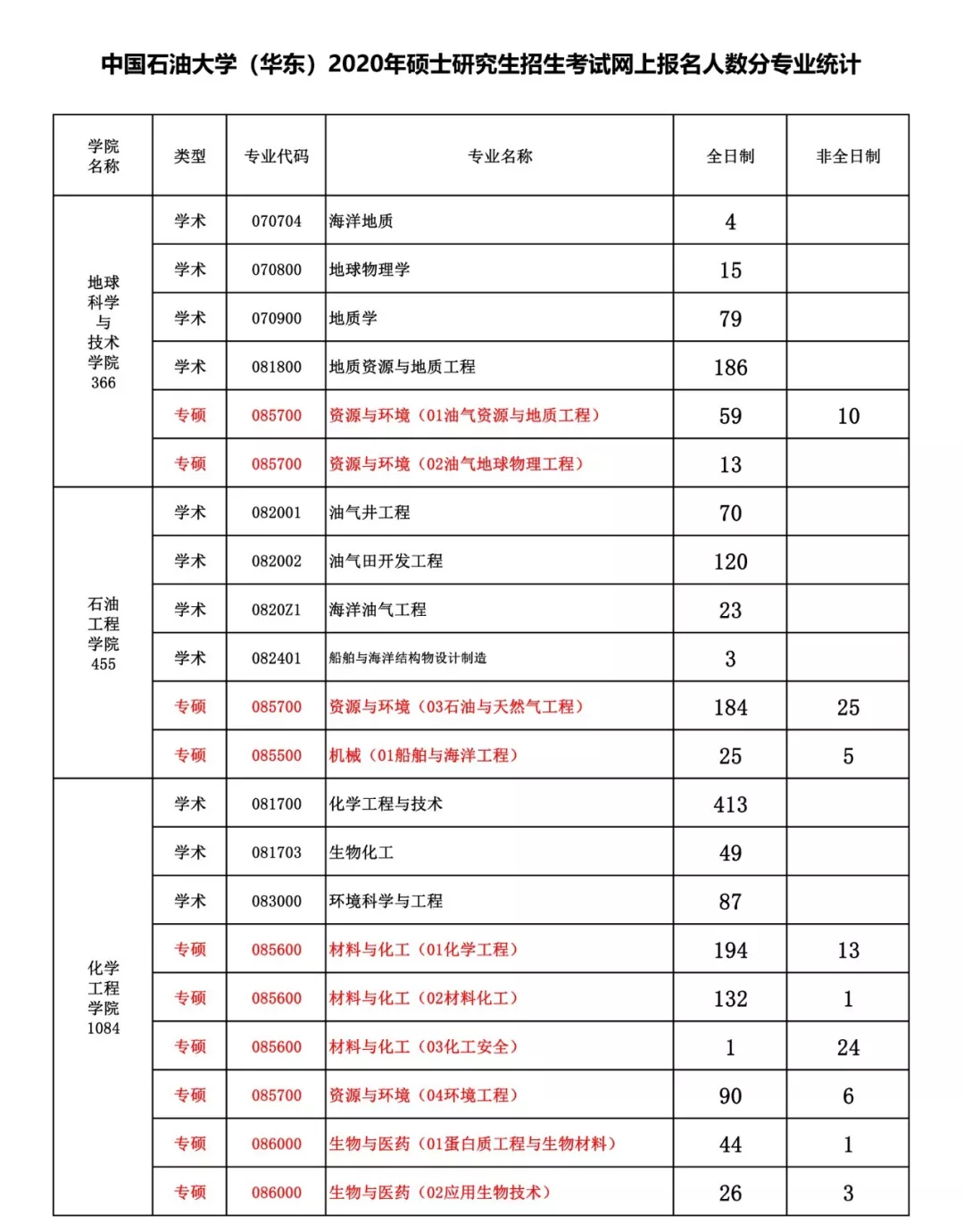 中国石油大学(华东)考研辅导班:2020年中国石油大学(华东)硕士招生报名人数分专业统计