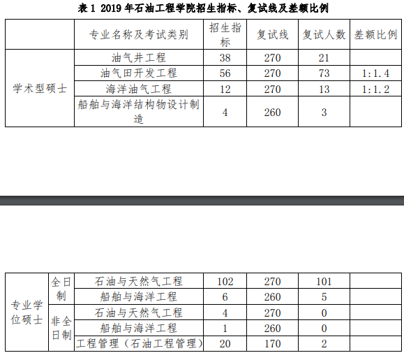 石油工程学院 2019 年硕士研究生考试招生 复试录取工作方案