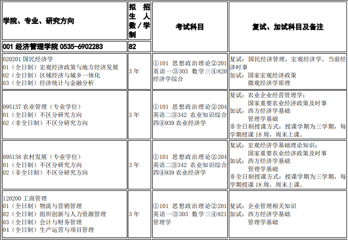 烟台大学考研辅导班:2020年烟台大学经济管理学院考研招生专业目录