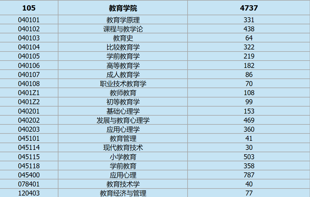 2019上海师范大学教育学院硕士研究生考试报考人数统计
