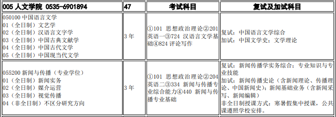 烟台大学考研辅导班:2020年烟台大学人文学院考研招生专业目录