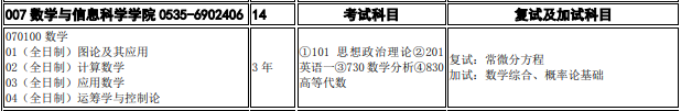 烟台大学考研辅导班:2020年烟台大学数学与信息科学学院考研招生专业目录