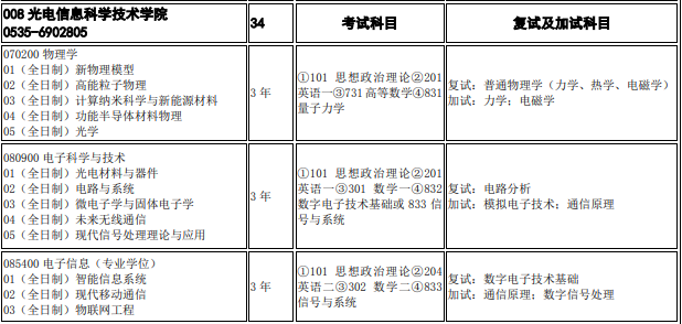 烟台大学考研辅导班:2020年烟台大学光电信息科学技术学院考研招生专业目录