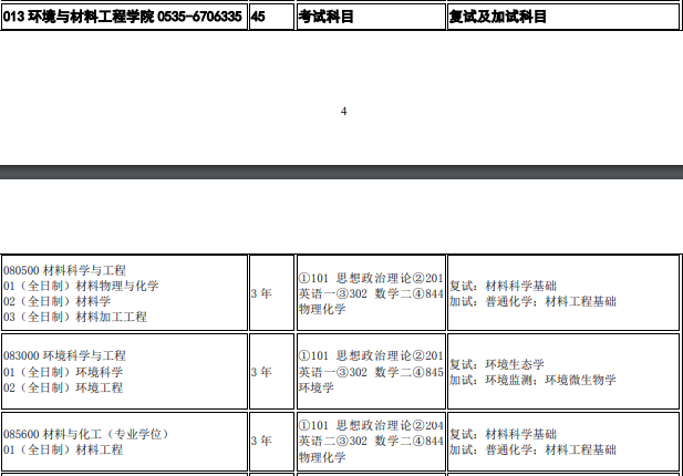 烟台大学考研辅导班:2020年烟台大学环境与材料工程学院考研招生专业目录