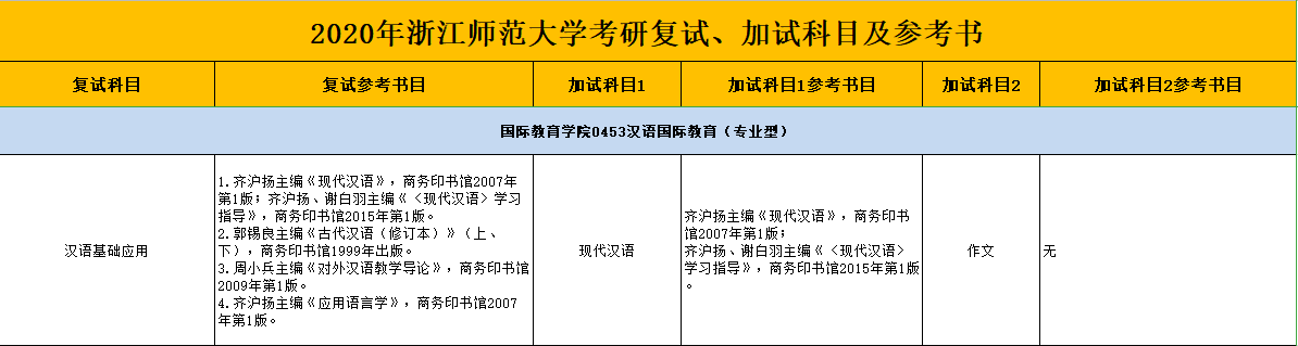 浙师大考研辅导班:2020年浙江师范大学复试参考书目-0453汉语国际教育(专业型)