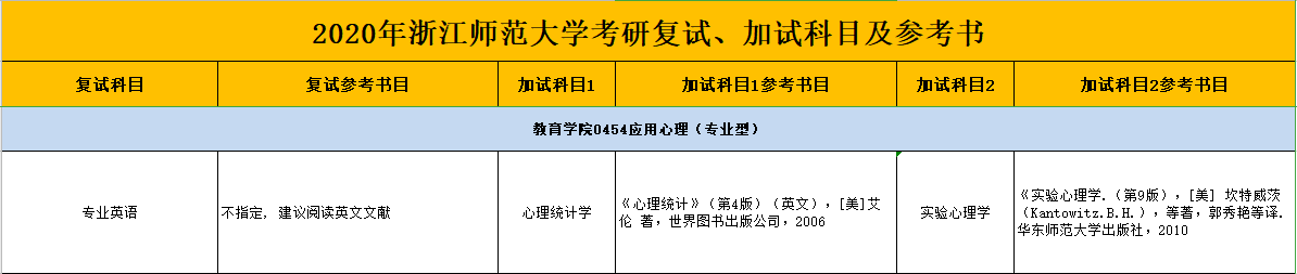 浙师大考研辅导班:2020年浙江师范大学复试参考书目-教育学院0454应用心理(专业型)