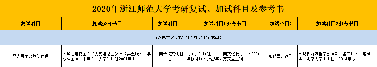 浙师大考研辅导班:2020年浙江师范大学复试参考书目-马克思主义学院0101哲学(学术型)