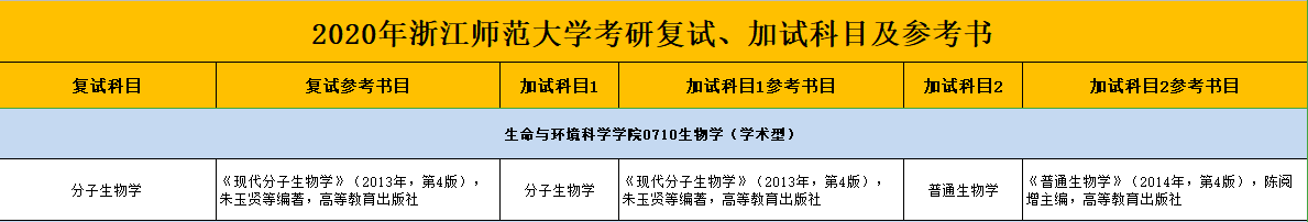 浙师大考研辅导班:2020年浙江师范大学复试参考书目-生命与环境科学学院0710生物学(学术型)