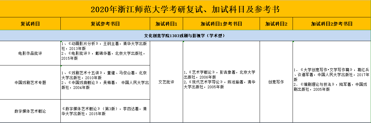 浙师大考研辅导班:2020年浙江师范大学复试参考书目-1303戏剧与影视学(学术型)