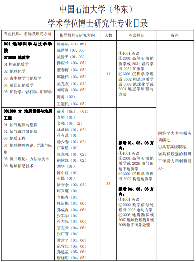 中国石油大学(华东)考研辅导班:2020中国石油大学(华东) 学术学位博士研究生专业目录