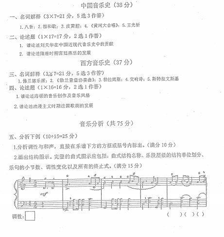 安徽师范大学考研辅导班:2018年安徽师范大学考研661中西音乐史与音乐分析真题