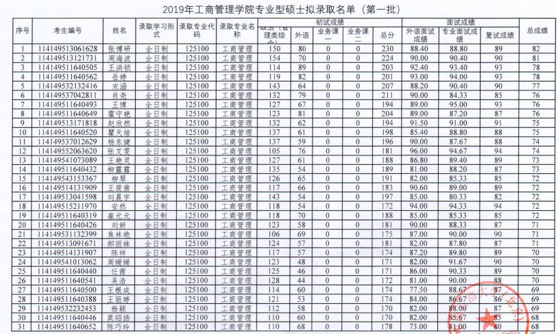中国石油大学(北京)考研辅导班:2019年中国石油大学(北京)工商管理学院硕士拟录取名单