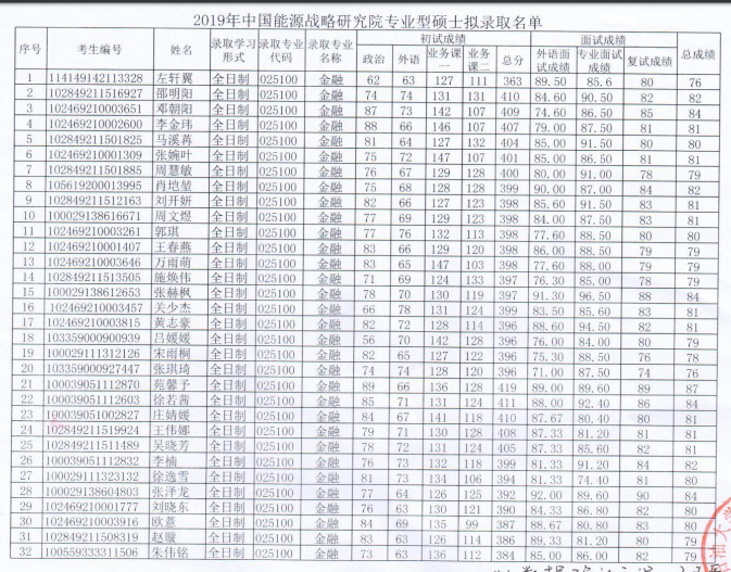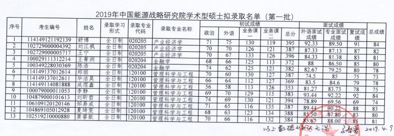 中国石油大学(北京)考研辅导班:2019年中国石油大学(北京)中国能源战略研究院硕士拟录取名单