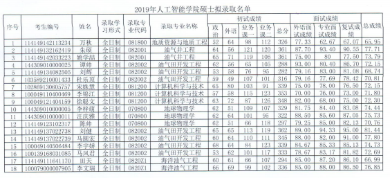 中国石油大学(北京)考研辅导班:2019年中国石油大学(北京)人工智能学院硕士拟录取名单