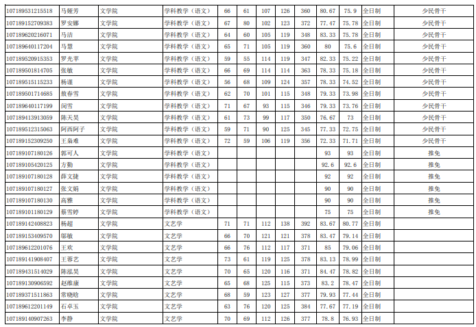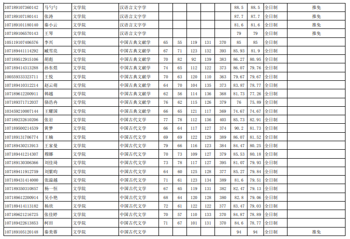 陕西师范大学考研辅导班:2019年陕西师范大学文学院拟录取名单