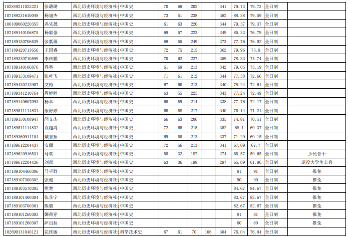 陕西师范大学考研辅导班:2019年陕西师范大学西北历史环境与经济社会学院拟录取名单