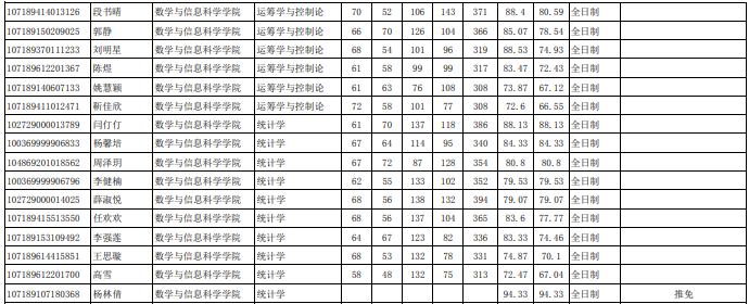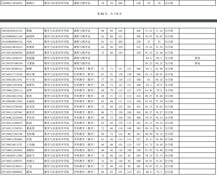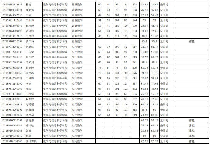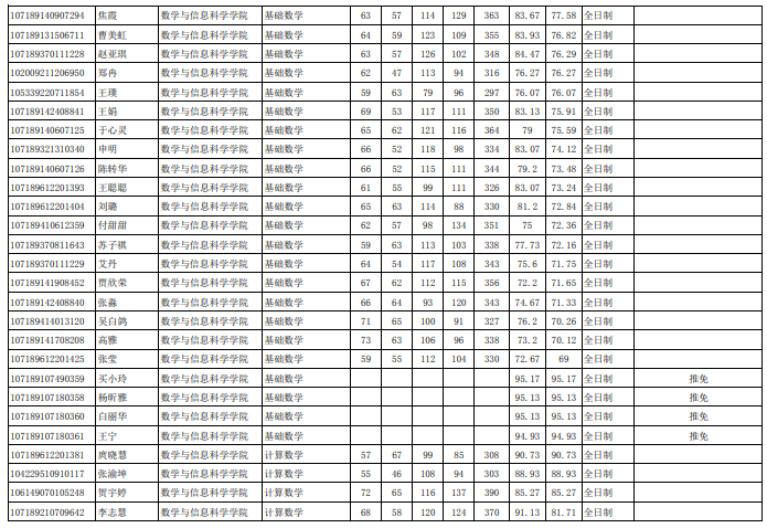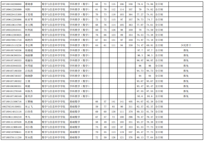 陕西师范大学考研辅导班:2019年陕西师范大学数学与信息科学学院拟录取名单