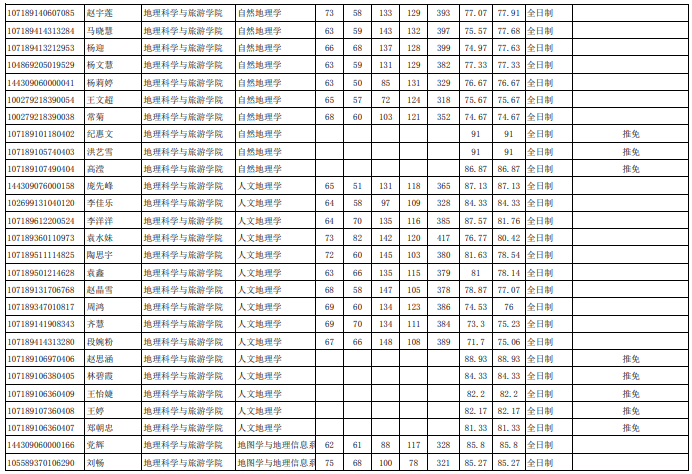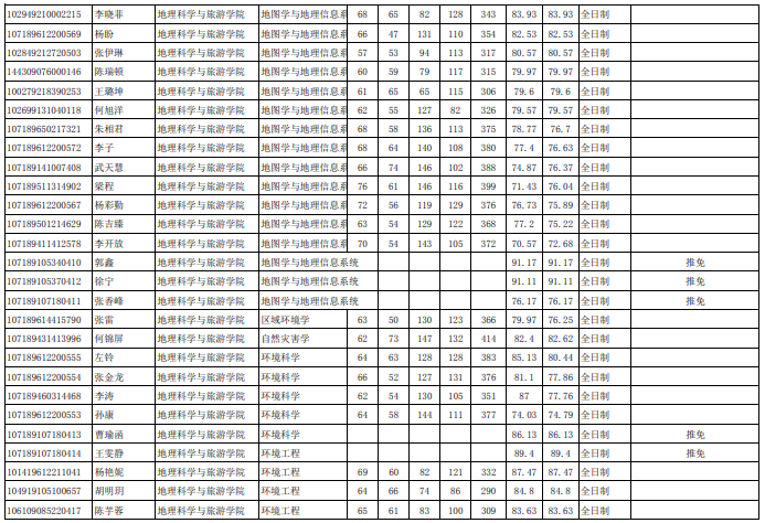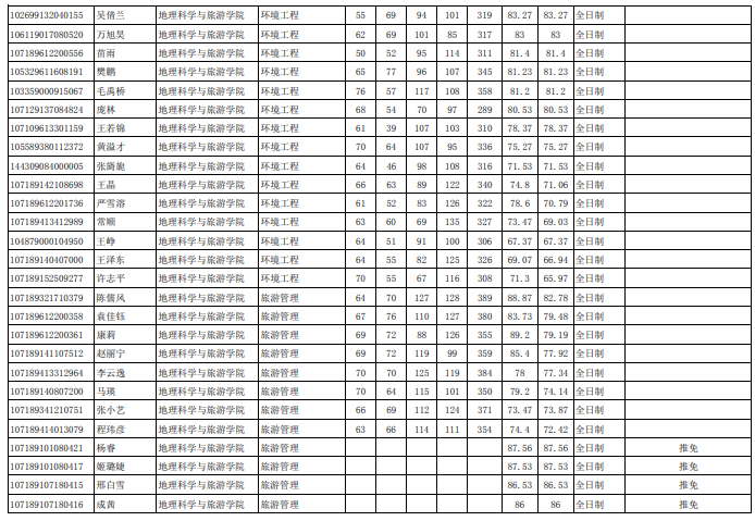 陕西师范大学考研辅导班:2019年陕西师范大学地理科学与旅游学院拟录取名单