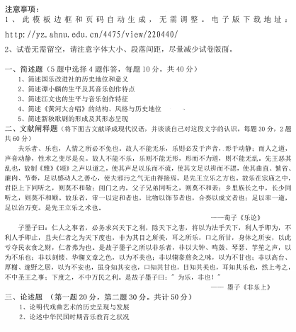 安徽师范大学考研辅导班:2018年安徽师范大学考研861中国音乐史真题
