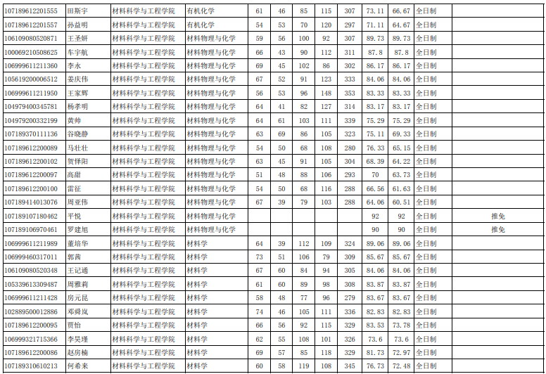 陕西师范大学考研辅导班:2019年陕西师范大学材料科学与工程学院拟录取名单