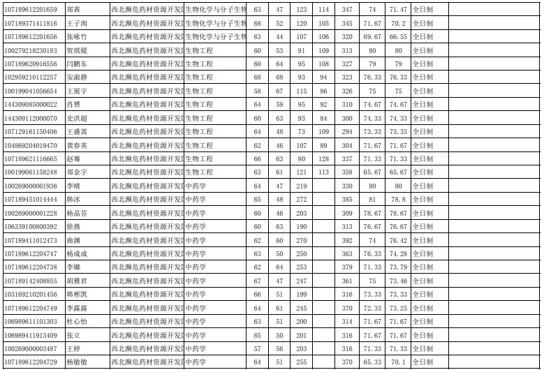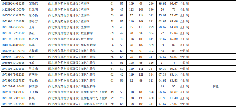 陕西师范大学考研辅导班:2019年陕西师范大学西北濒危药材资源开发、“一带一路”建设与中亚拟录取名单