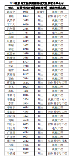 西安电子科技大学考研辅导班:2020年西安电子科技大学机电工程学院推免研究生录取名单公示