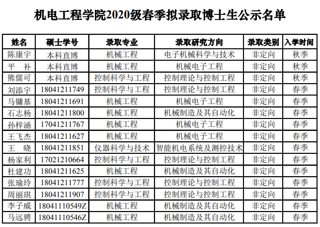 西安电子科技大学考研辅导班:2020年西安电子科技大学机电工程学院博士生拟录取名单