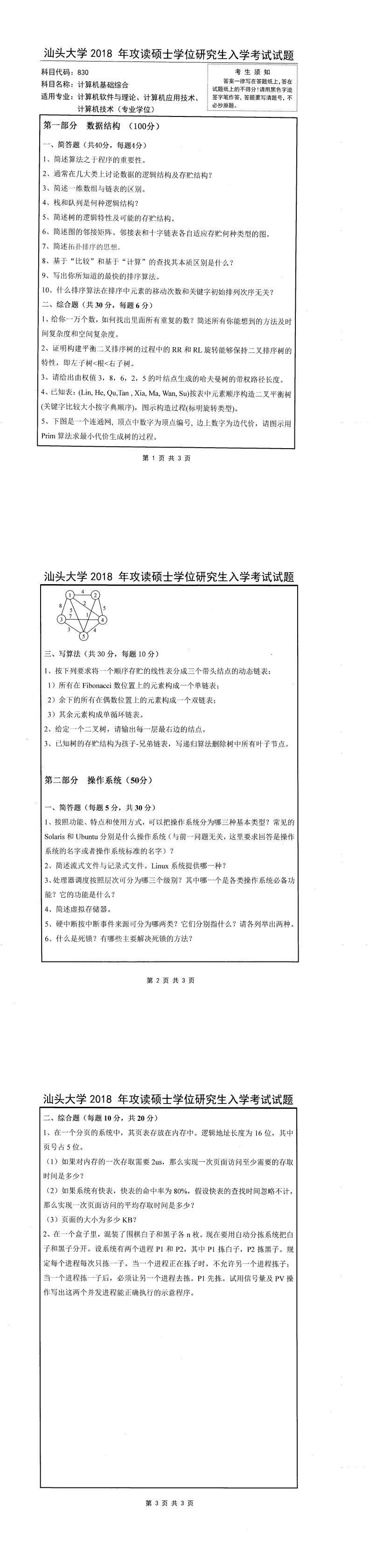 汕头大学考研辅导班:2018年汕头大学考研830计算机基础综合真题