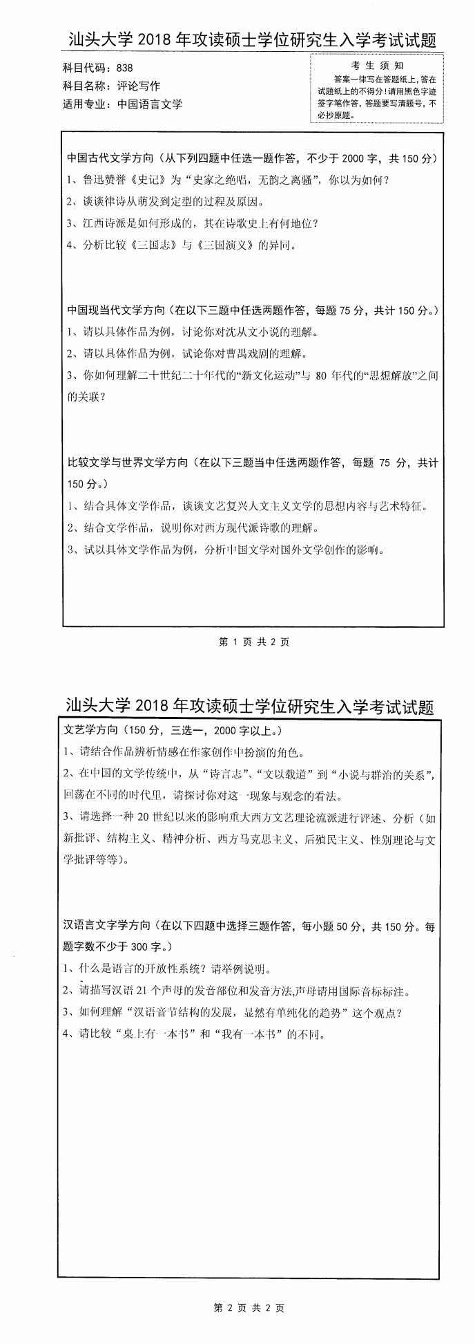 汕头大学考研辅导班:2018年汕头大学考研838评论写作真题