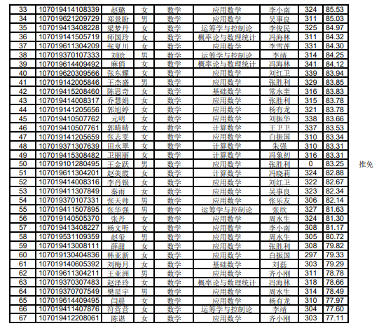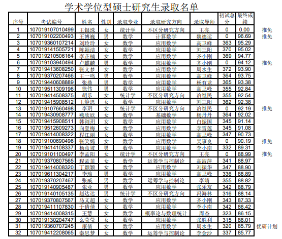 西安电子科技大学考研辅导班:2020年西安电子科技大学数学与统计学院优研计划入选名单
