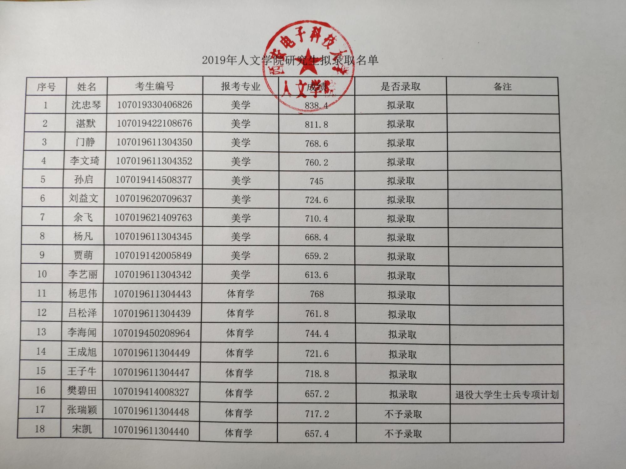 西安电子科技大学考研辅导班:2019年西安电子科技大学人文学院硕士研究生录取名单