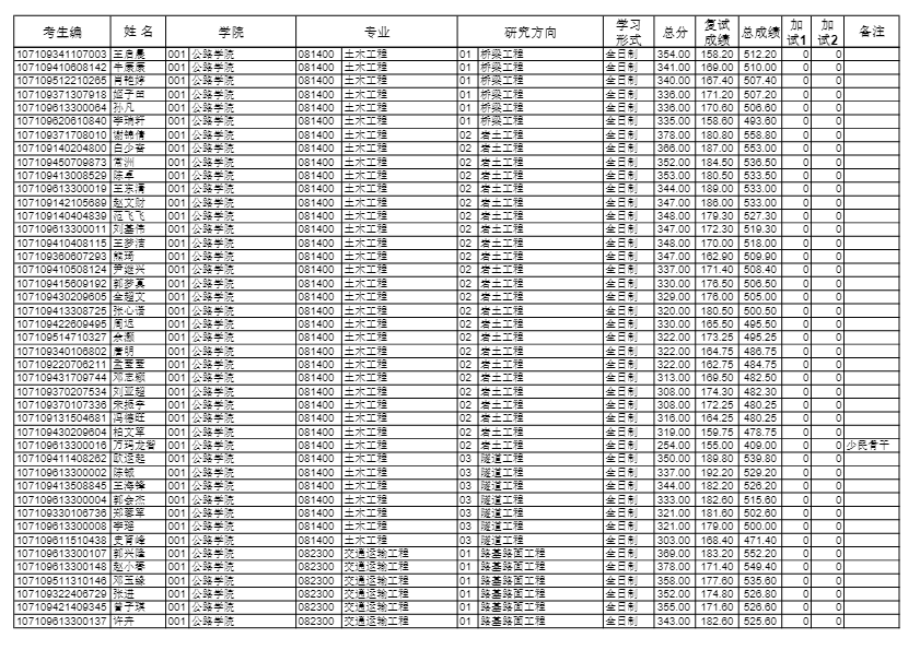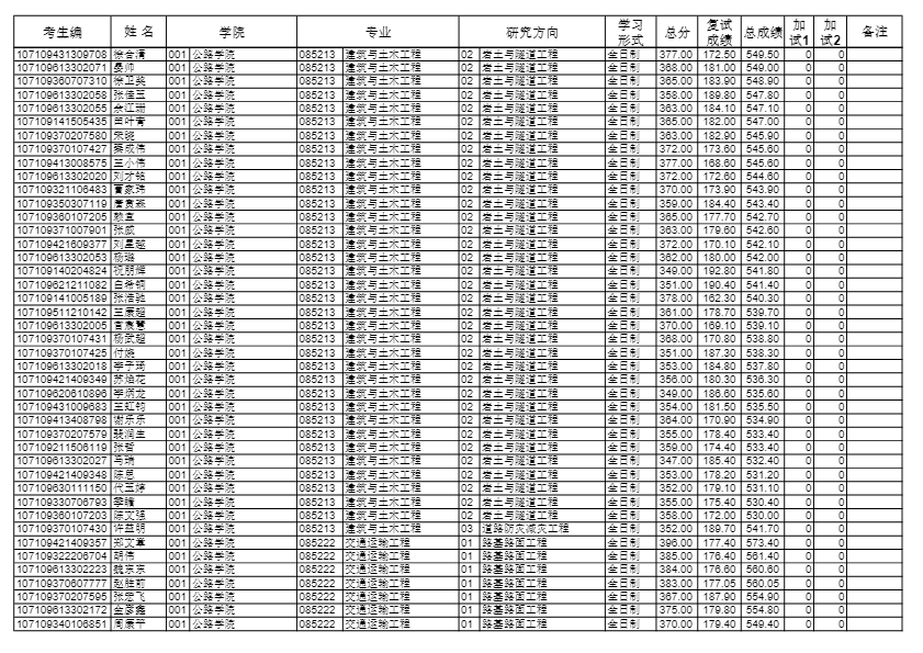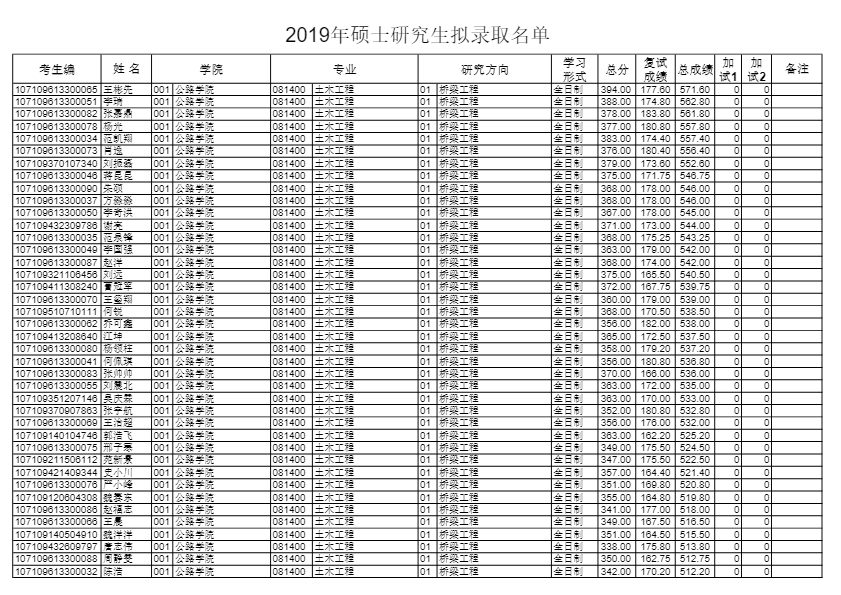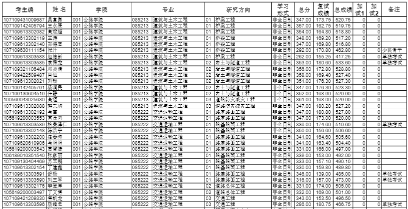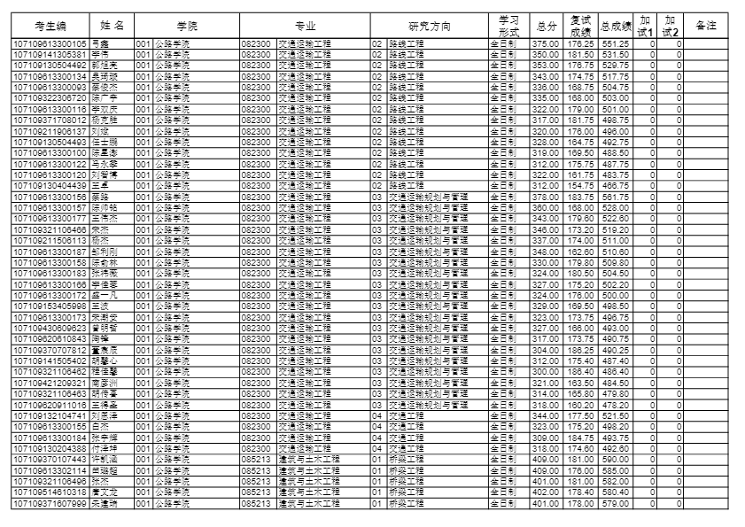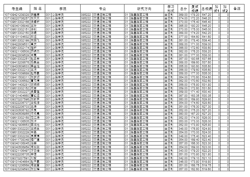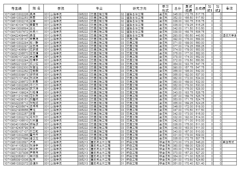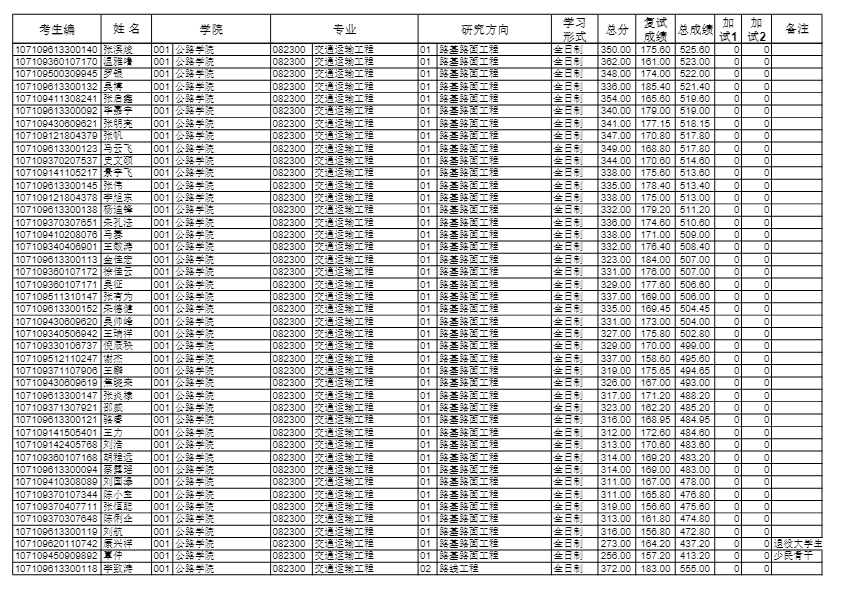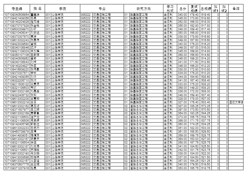 长安大学考研辅导班:2019长安大学公路学院硕士研究生拟录取名单