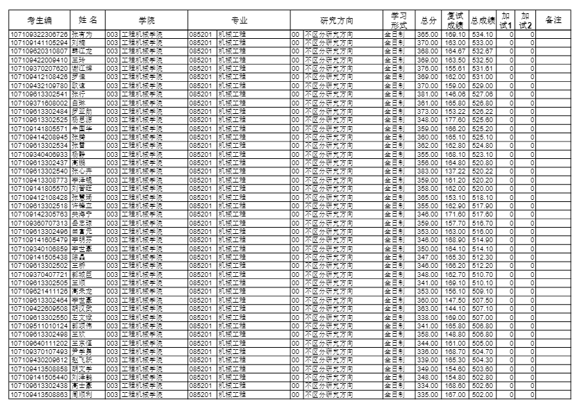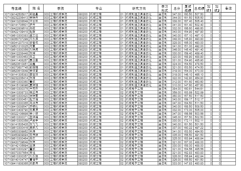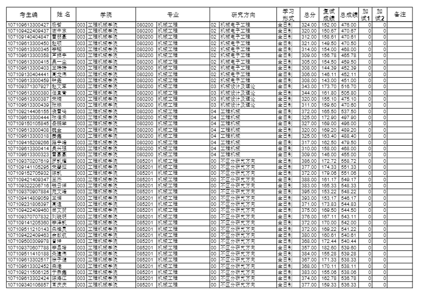 长安大学考研辅导班:2019长安大学工程机械学院硕士研究生拟录取名单