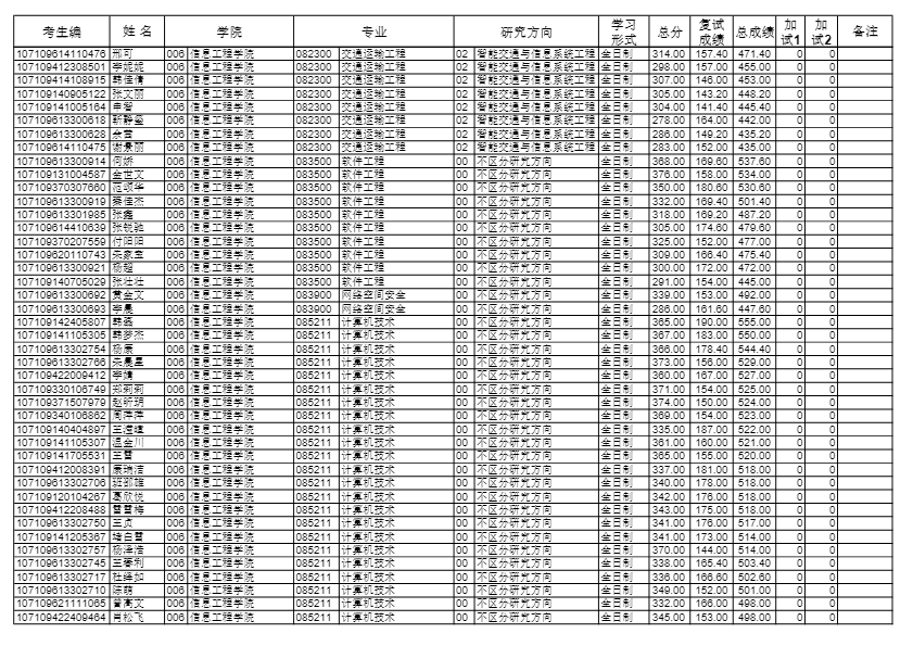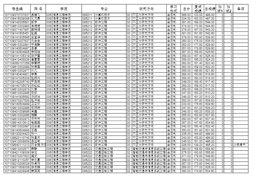 长安大学考研辅导班:2019长安大学信息工程学院硕士研究生拟录取名单