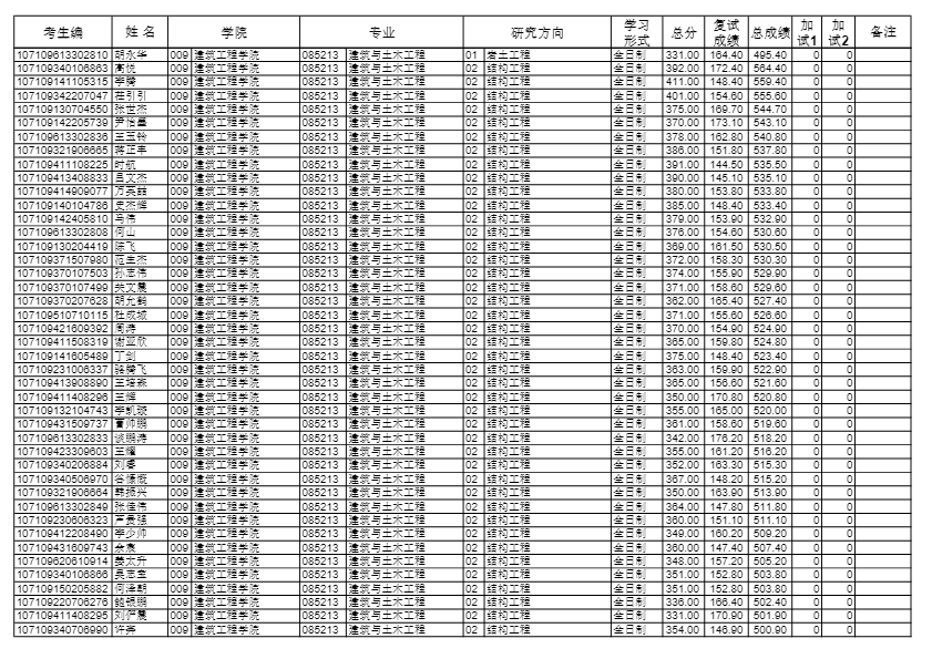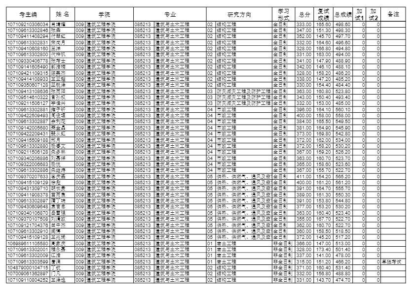 长安大学考研辅导班:2019长安大学建筑工程学院硕士研究生拟录取名单