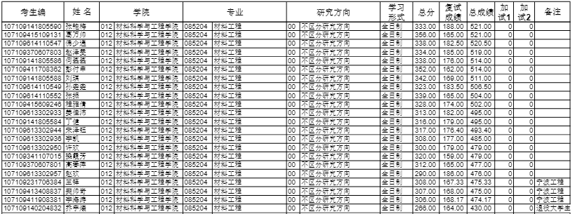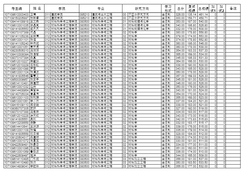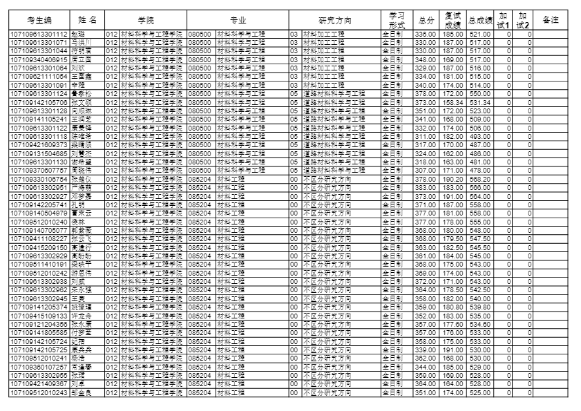 长安大学考研辅导班:2019长安大学材料科学与工程学院硕士研究生拟录取名单