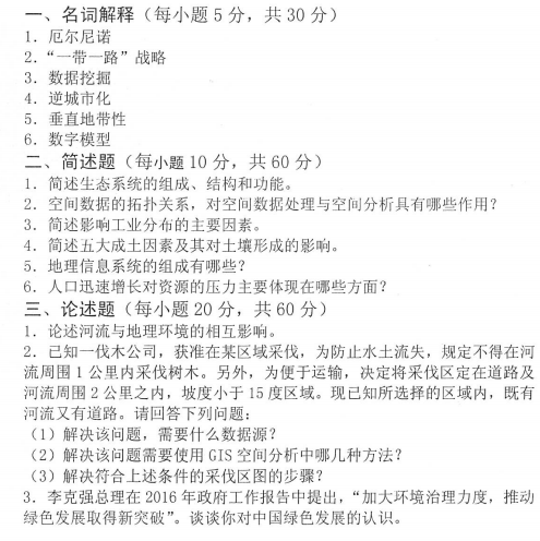 山东师范大学考研辅导班:2017年山东师范大学考研832地理学基础真题