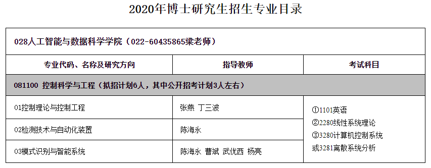 河工大考研辅导班:2020年河北工业大学考博专业目录-人工智能与数据科学学院