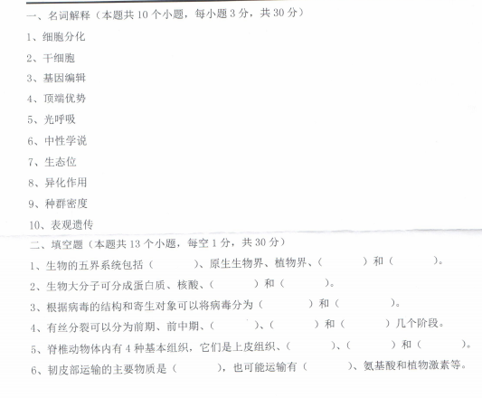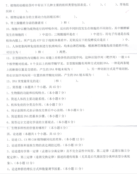 生物学考研真题