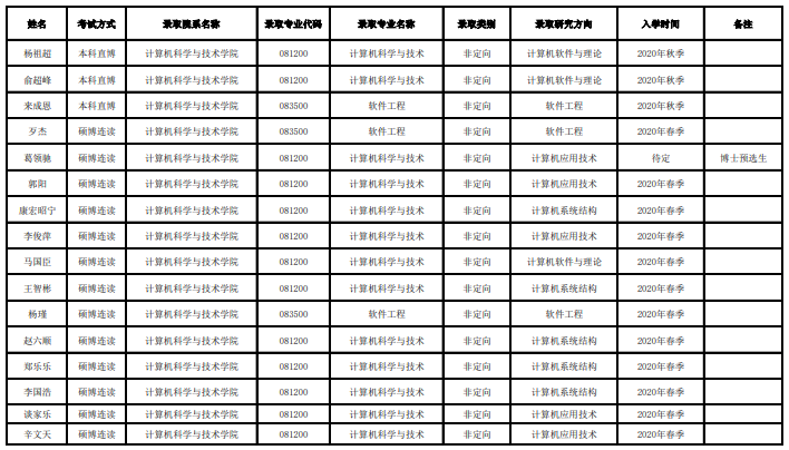 2020年春季博士研究生录取工作已经结束,经资格审核、复试答辩,本着“择优录取”的原则,现将计科院2020年春季学术学位博士研究生招生拟录取名单公示(见附件),请仔细核对姓名、考试方式、录取专业、录取类别等信息,如果有误或者有异议,请在公示期内(十个工作日),向计科院研究生招生办公室(北校区主楼IV218办公室)反馈,电话:88201901, 逾期不再受理。